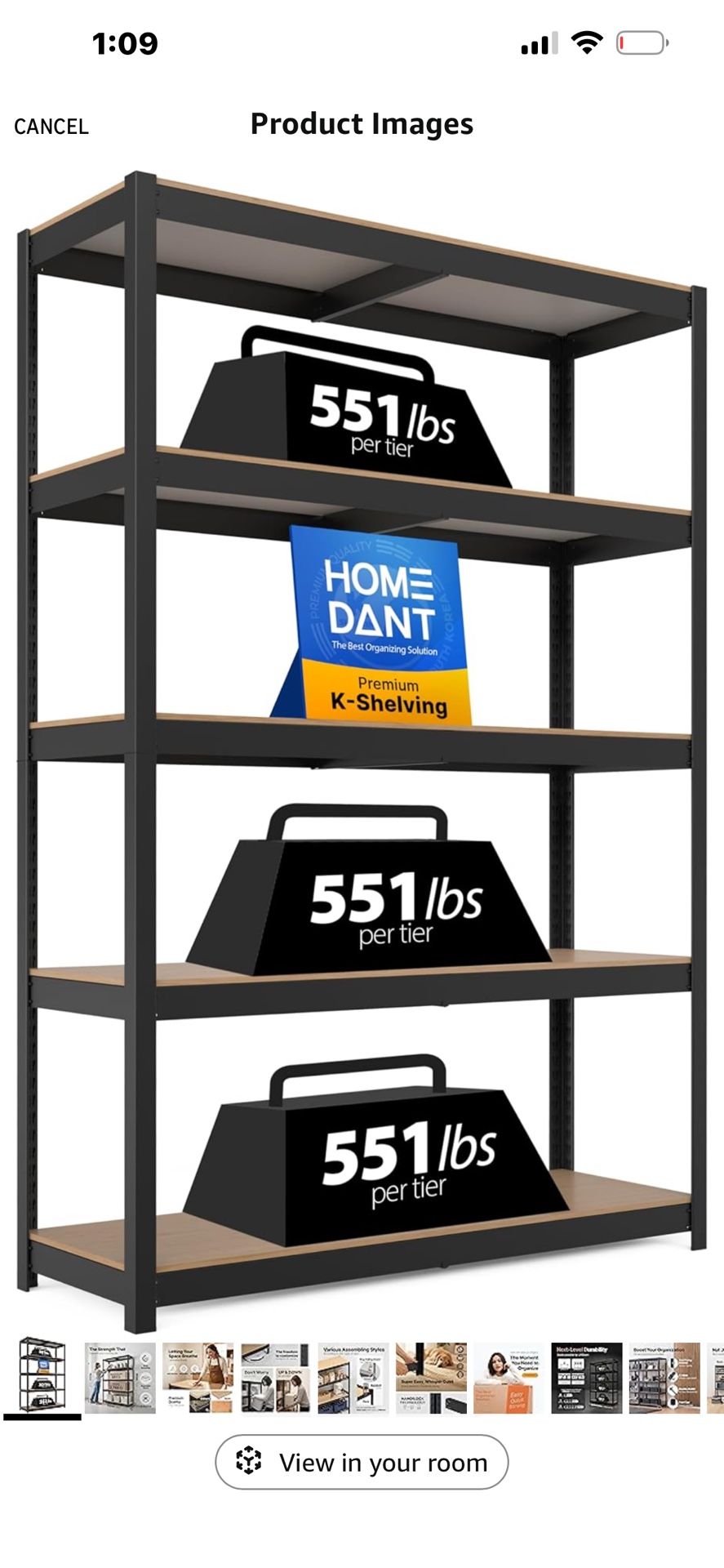 Originally $238 | Selling $175 New, in the box. HOMEDANT House 48.1" W 5 Tier Heavy Duty Garage Shelving Adjustable Metal Rack Storage Shelves Standing Shelf Unit Organizers Industrial Warehouse Basement Black 1Pack