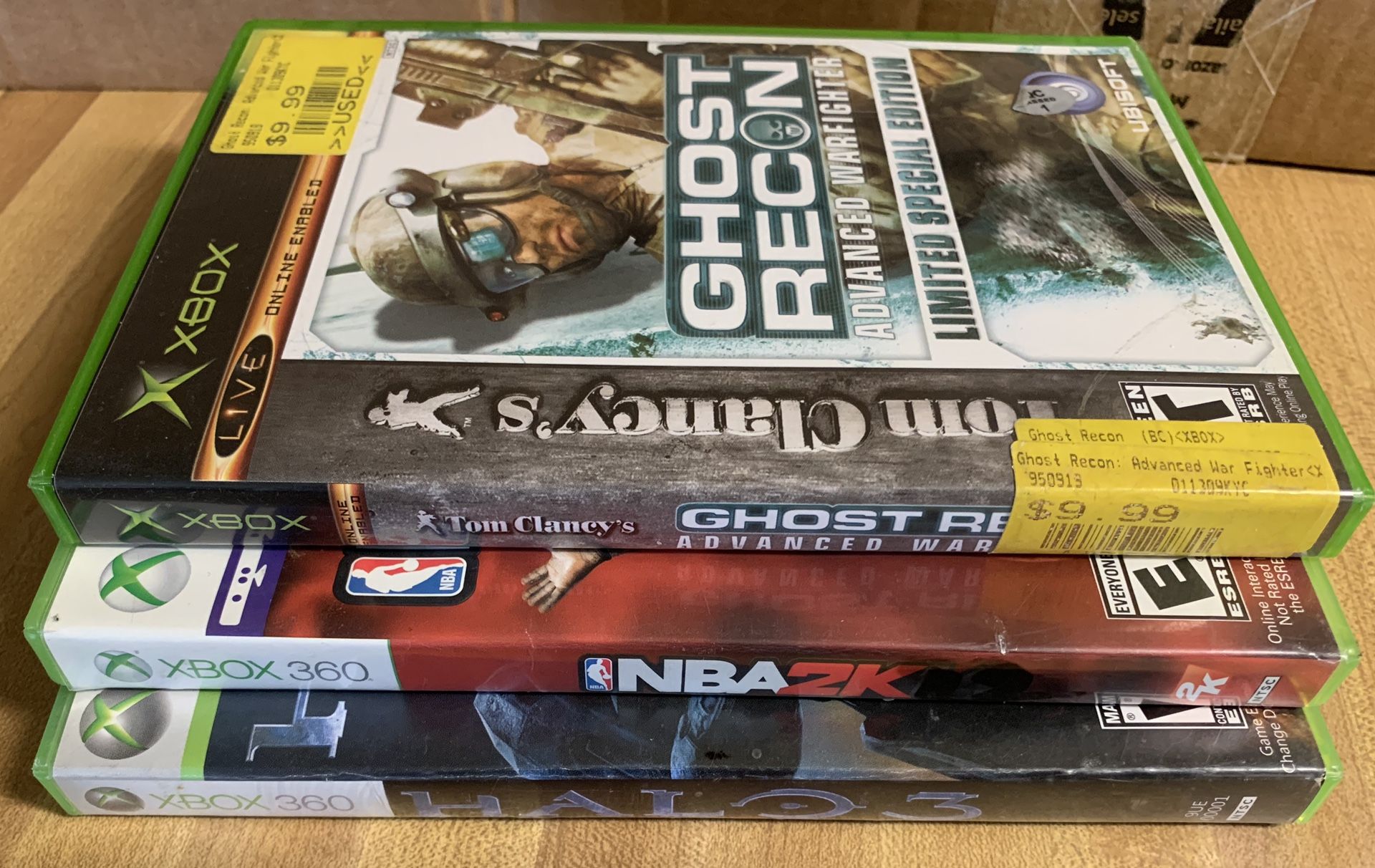 Lots of 3 XBOX 360 that contains NBA 2 K Halos 3 Ghost recon advanced war fighter