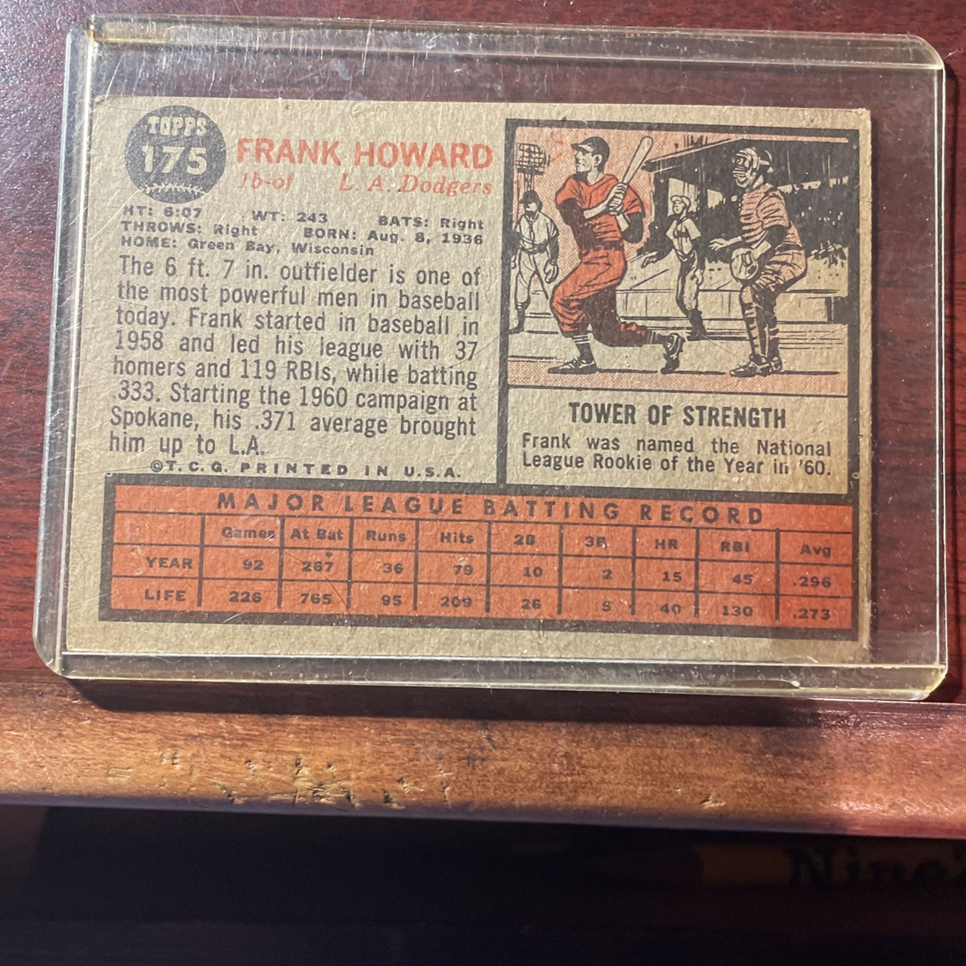 Cholesterol baseball card Frank Howard LA Dodgers