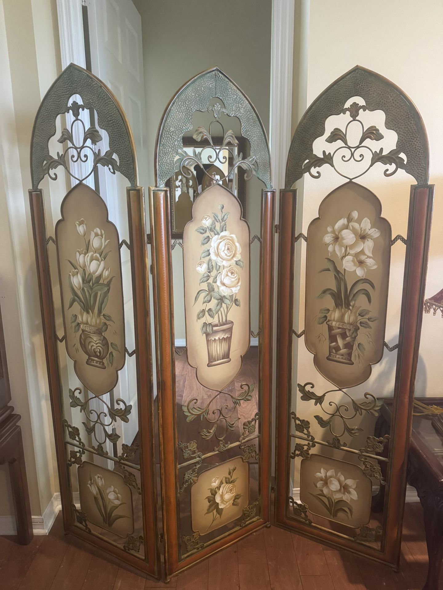 Vintage Screen/ Room Divider Al Metal, Hand Painted $450