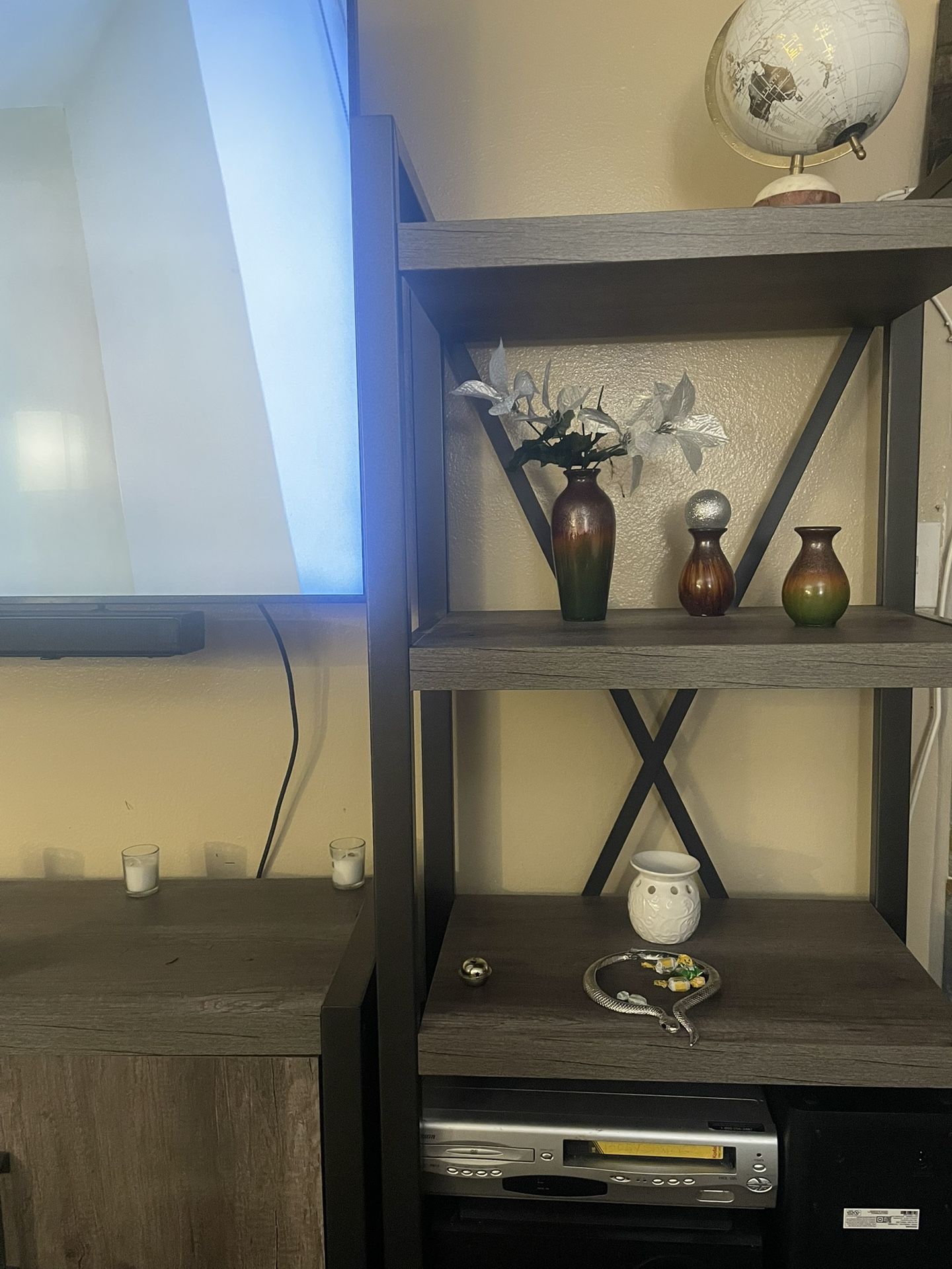 These are so dear to me they’re so beautiful. They are bookshelves that you could use for anything it wooden it’s a table that goes underneath your TV stand.. It’s so cute. I pay 500 three-piece and just make Offer