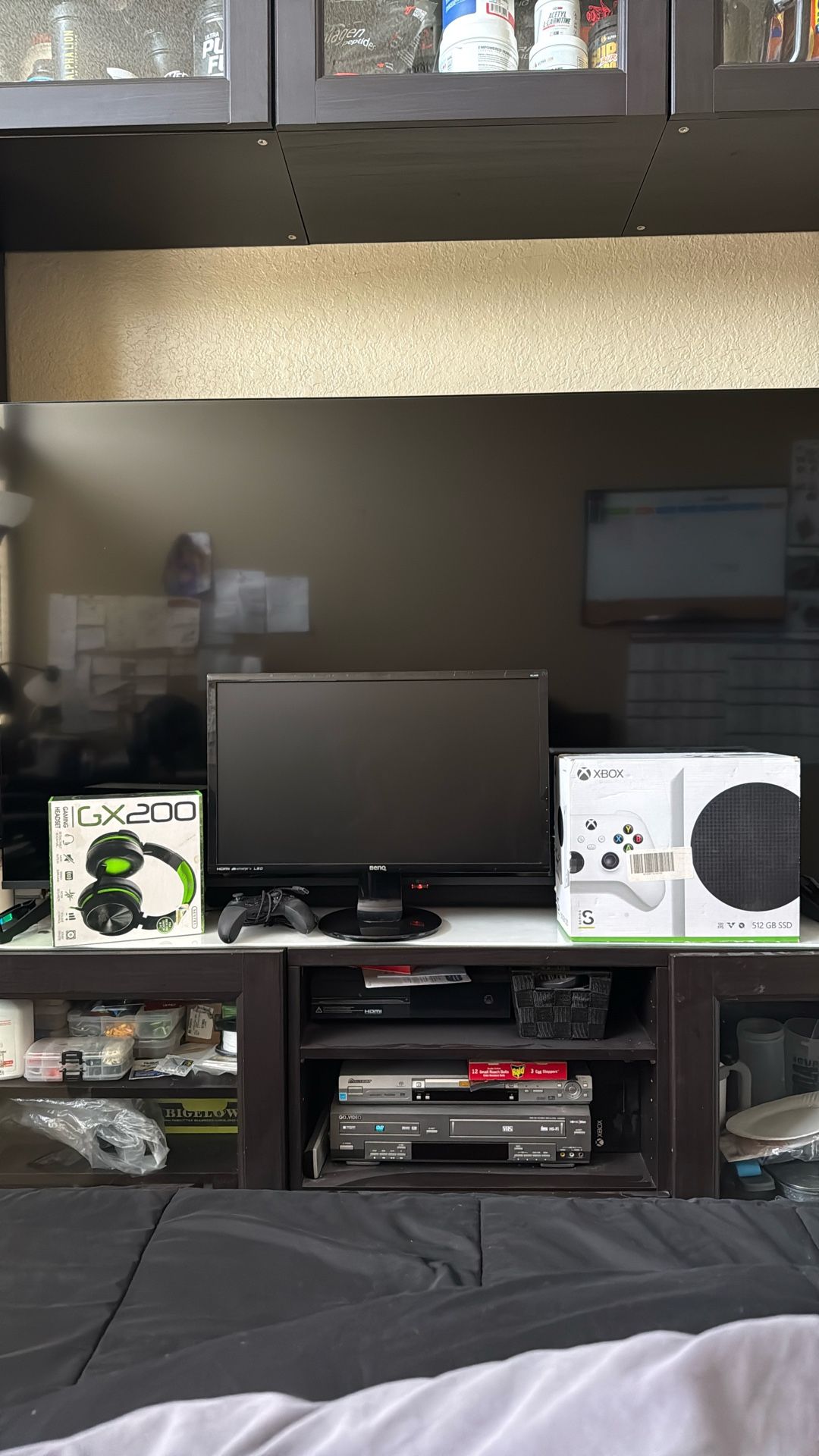 Xbox Series S 512 GB SSD with 24 inch BenQ gaming HDMI LED monitor and GX 200 gaming headset, gaming elite controller, and one Xbox free controller