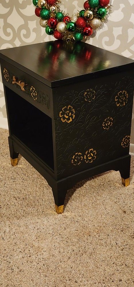 25” tall × 20” wide × 16” Real wood vintage nightstand. One of a kind. From a non-smokers home. Very charming and ornate. Pickups until 9:00 p.m.
