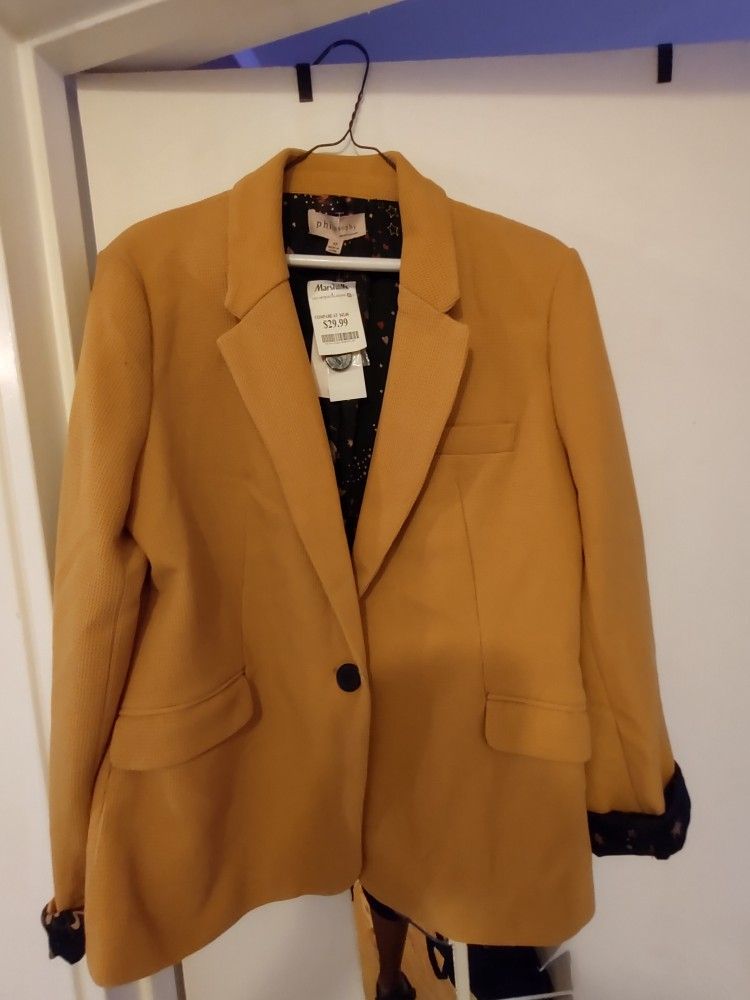 Woman's Philosophy Mustard Color Blazer Size 12 Polyester Blend ,Viscose And Spandex