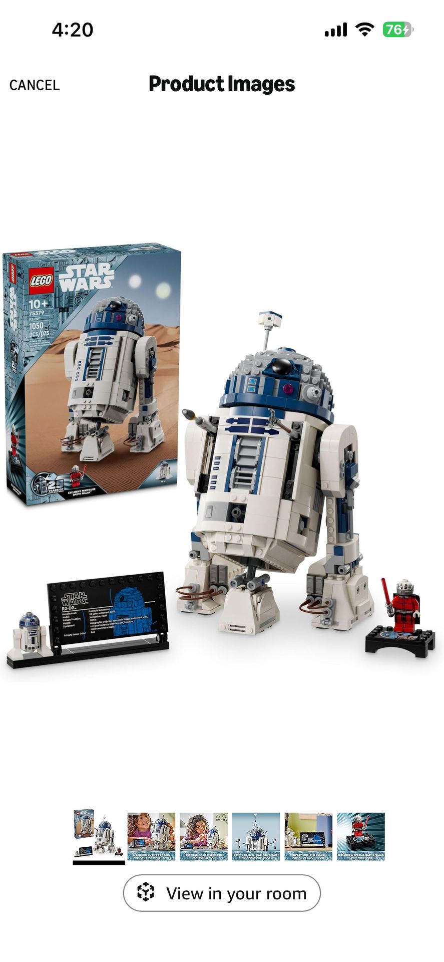 LEGO Star Wars R2-D2 Building Toy Set - Play or Display Star Wars Toy for Boys & Girls, Ages 10+ - Gift Ideas for Kids & Fans - Includes 25th Anniversary Darth Malak Minifigure - 75379