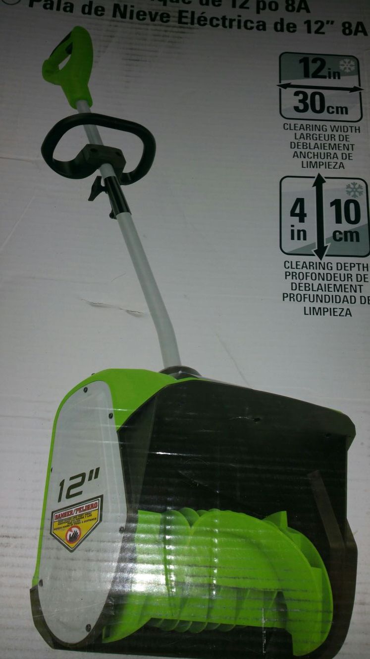 Electric snow shovel works great used once throw snow between 20 and 30 ft great for small driveways sidewalk and porches