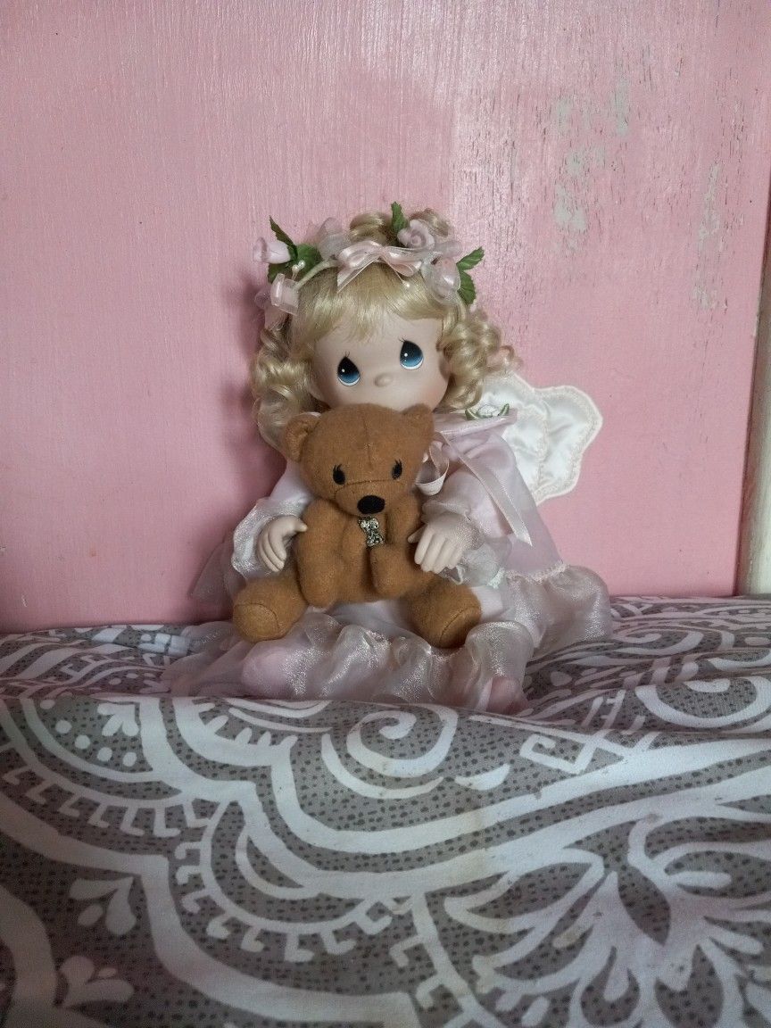 Precious Moments Doll With Wings Hold A Teddy Bear