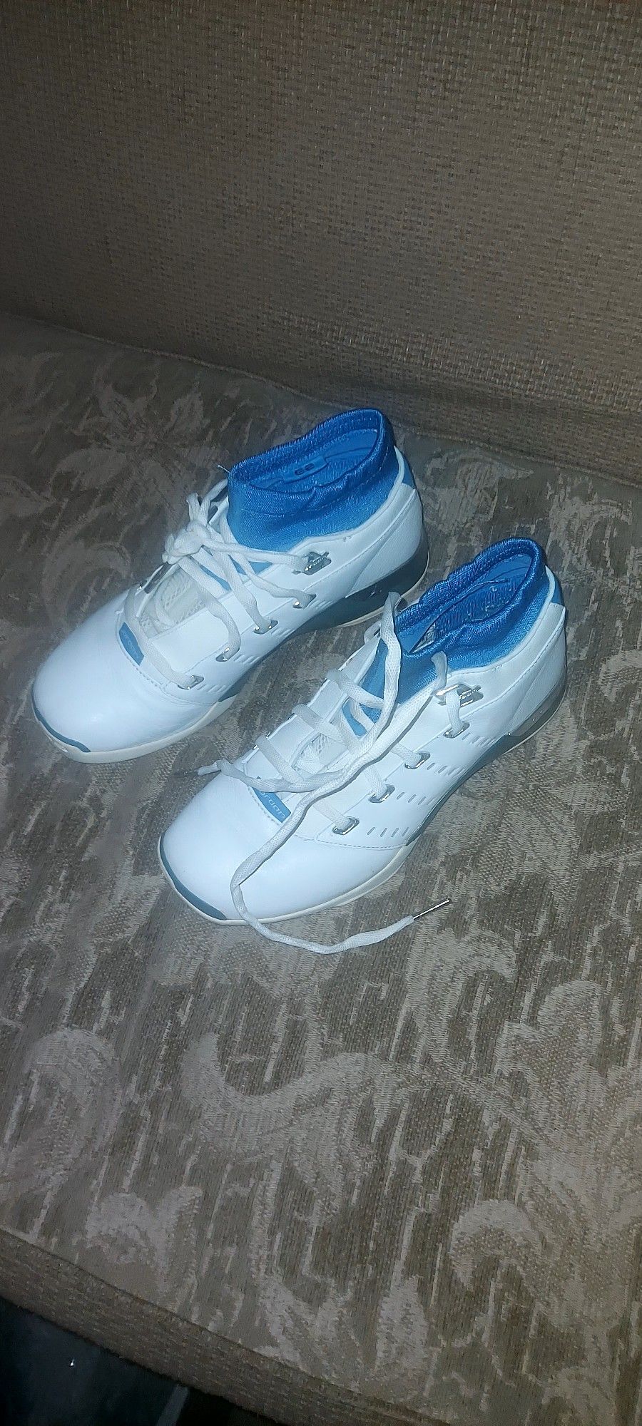 Nike Jordan XVII 17 Sneakers Shoes 303891-141 Size 9.5. Used, but nice. I discovered the shoes bottom sides are peeling off, see pictures. That's why I reduced the price considerably.