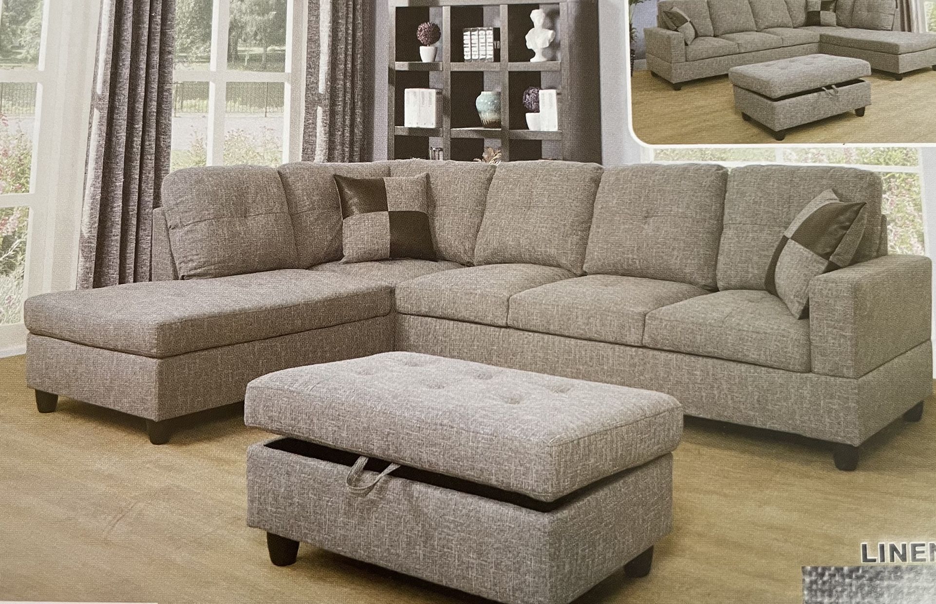 Grey Linen Sectional Couch And Ottoman
