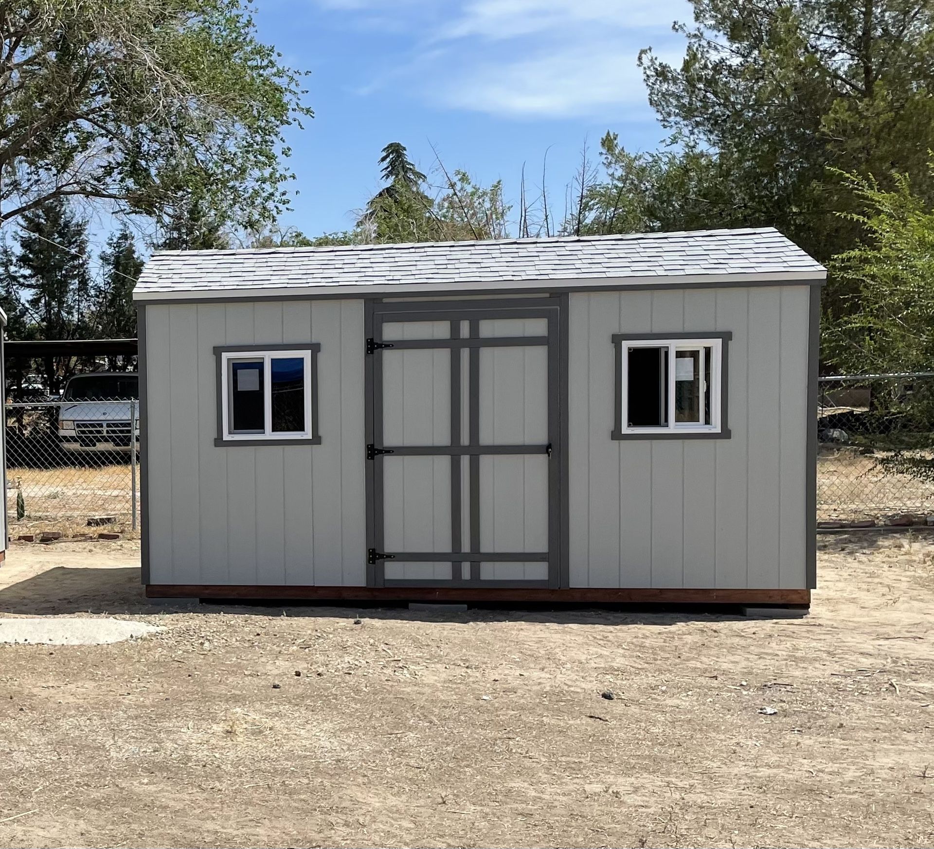 Shed 8x15x8 We build sheds. Hacemos sheds Base 2x6 pressure treated Flooring 3/4 Framing 2x4 Siding Paint of choice (trims white ) 2 windows 2x2 ft Single door 4ft x6ft Roofing shingles Vents We build in one day