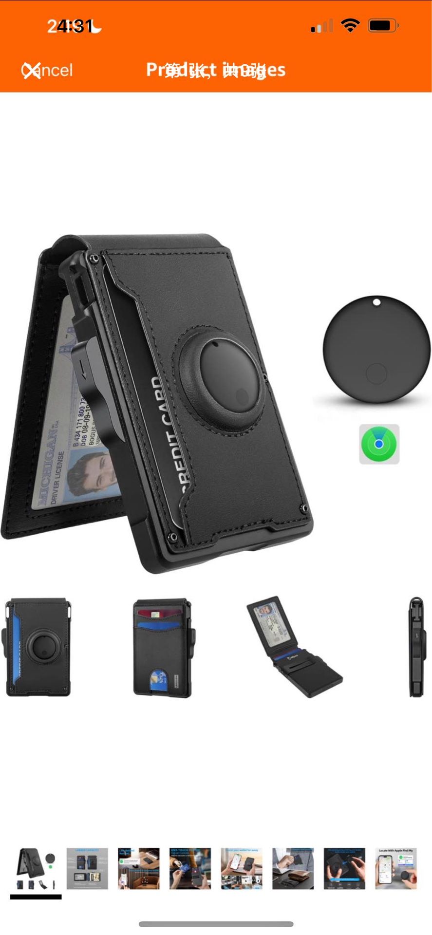 umoven Wallet for Men with Air Tag(iOS Only), Mens Metal Wallet Minimalist with Money Clip & ID Window, Slim Leather Slots RFID Blocking Bifold Wallet
