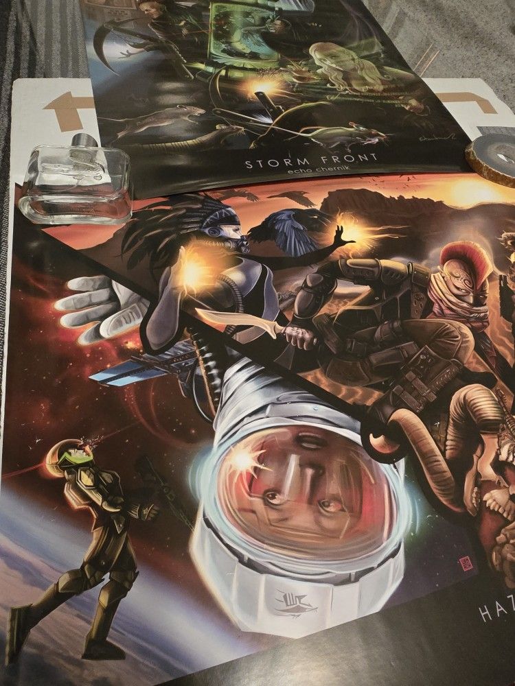 Set Of 2 Posters: Storm Front & Hazard Pay By Echo Chernik, Signed 19x27"