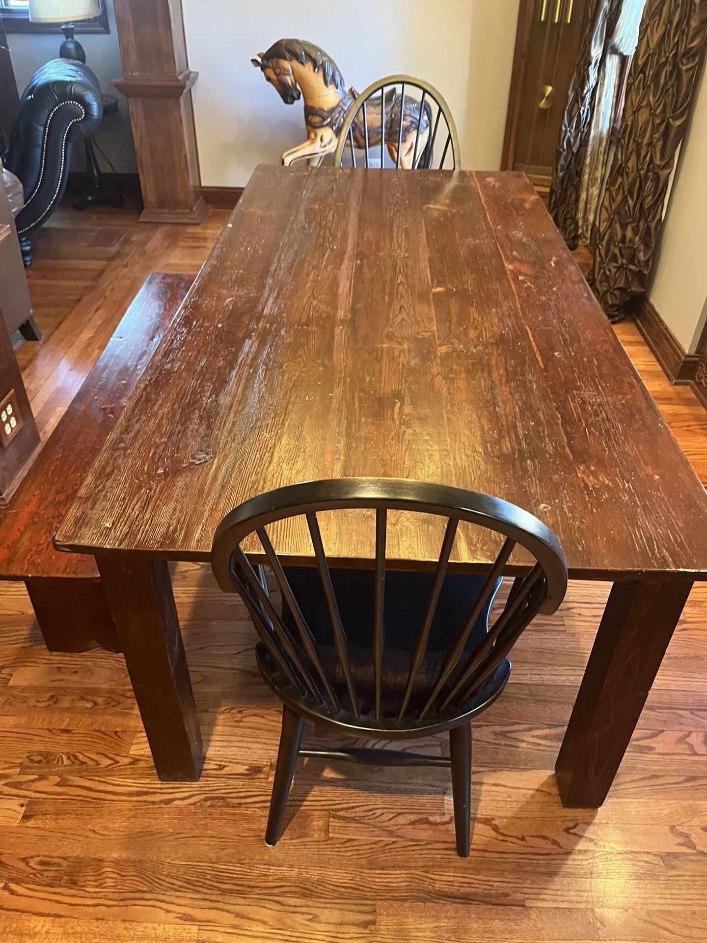 Barnwood custom-made table with bench and chairs 40 x 83
