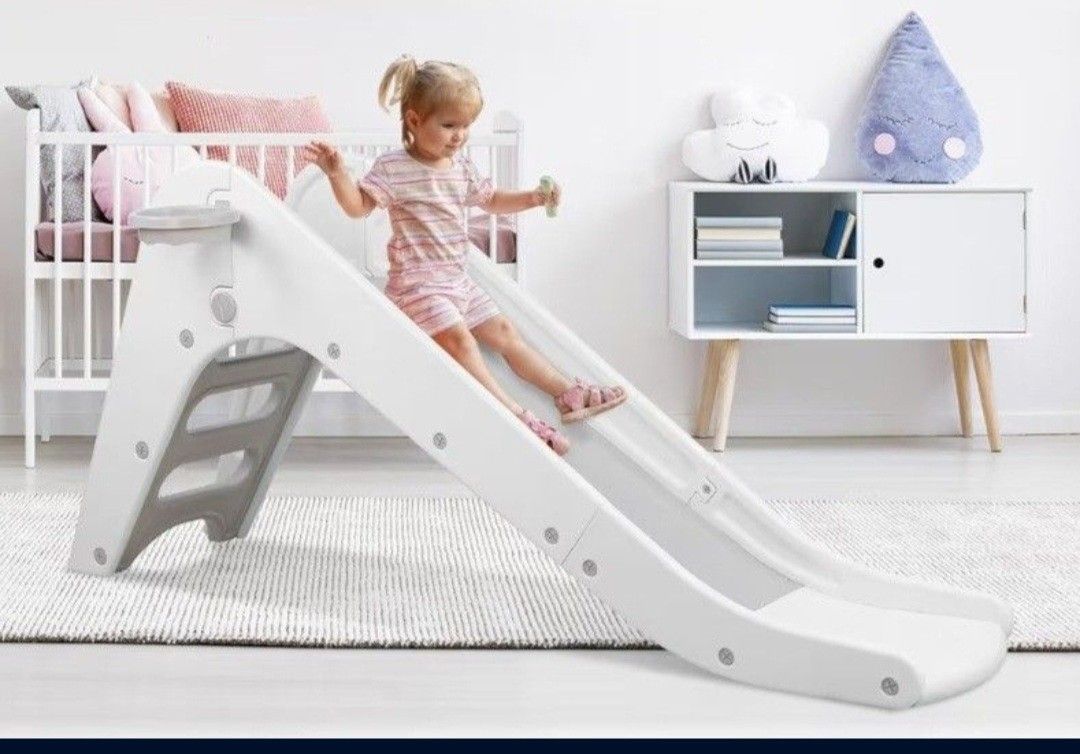 MAMIZO 3 in 1 Toddler Slide, Extra Long Baby Slide Climber Playset with Basketball Hoop & Ball, Non-Slip Steps, Freestanding Indoor Outdoor Playground