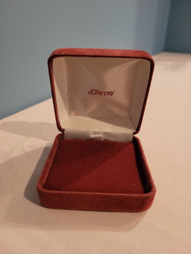 Necklace Jewelry Case JCPenny, measures about 2 1/2" wide x 2 1/2" long x 1 1/4" tall. Velvet material, looks to be mauve color, no rips or tears. Used Bx90