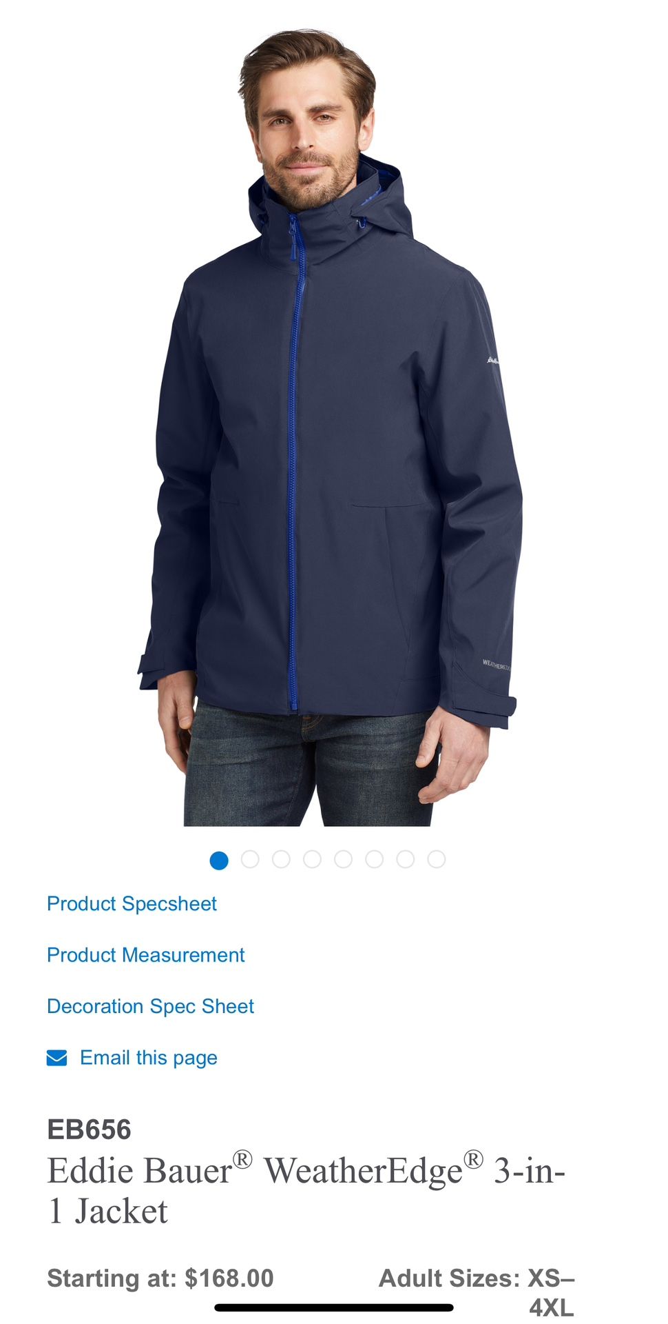 Brand new Eddie Bauer WeatherEdge 3-in-1 Jacket Never used. In Navy Blue, men’s size L Weather resistant, waterproof