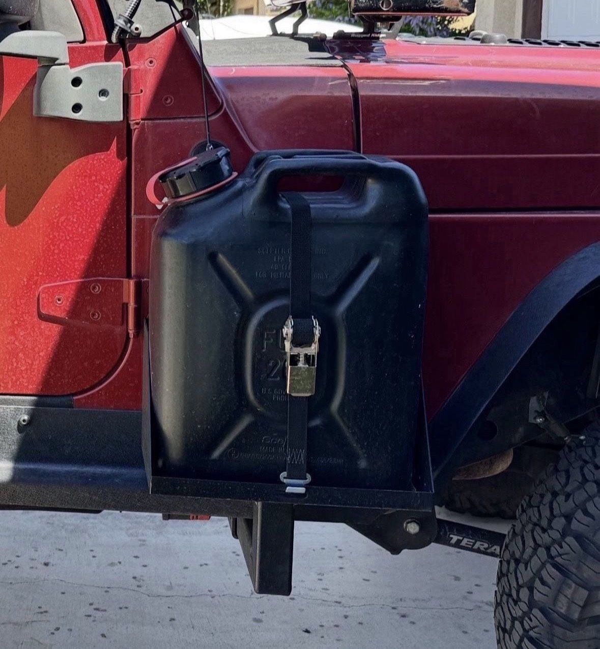 This listing is for 2 MORryde Frame Side Mount Jerry Can Holder w/ Tall Tray. For both driver and passenger side. They easily mount to the frame. They are in great condition. Fuel jugs are included