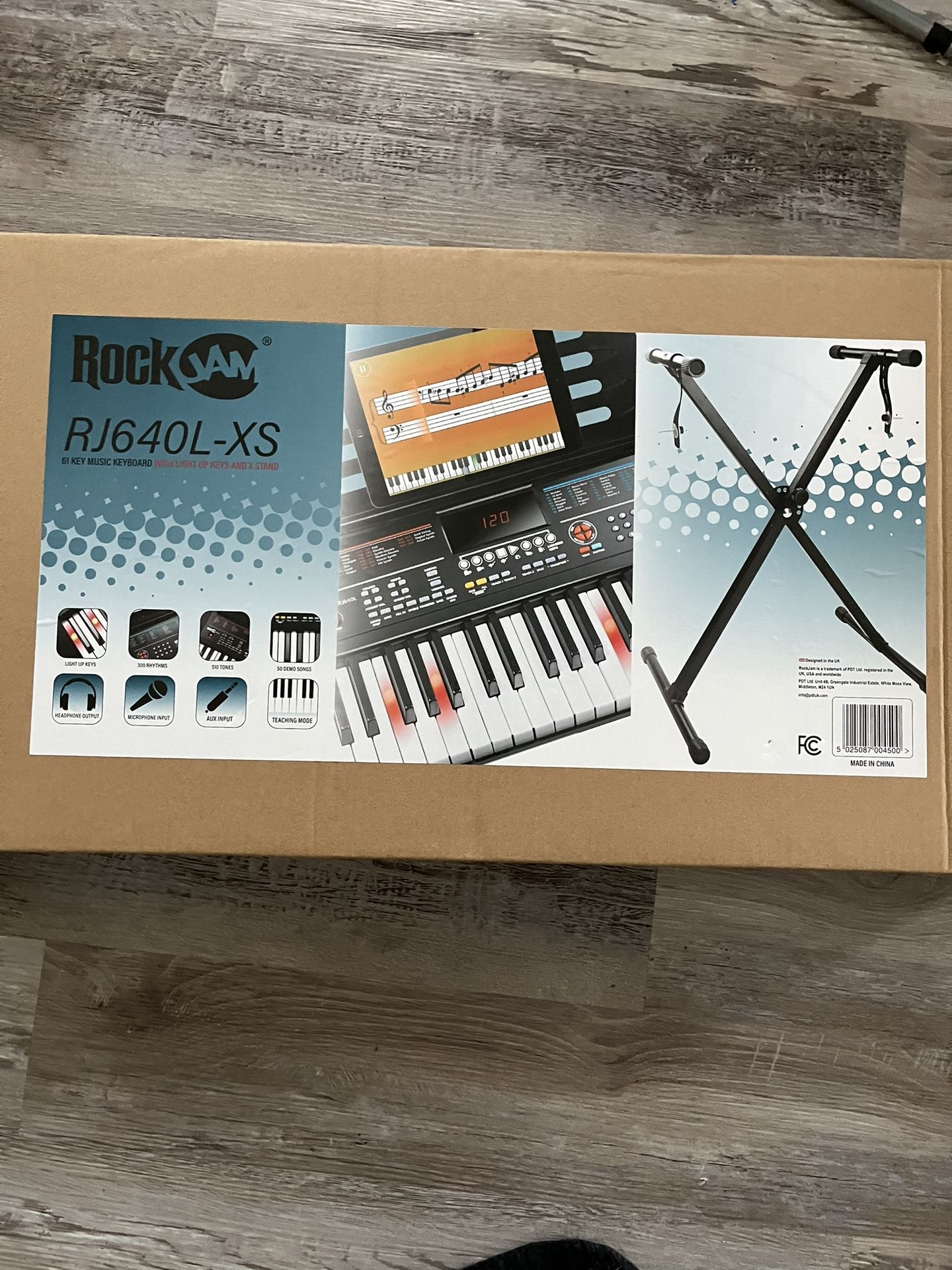 RockJam 61 Key Light Up Keyboard Piano Kit. Comes with Keyboard Stand, Sheet Music Stand & self guided Lessons, model RJ640L-XS. Unopened in box. To a good home.
