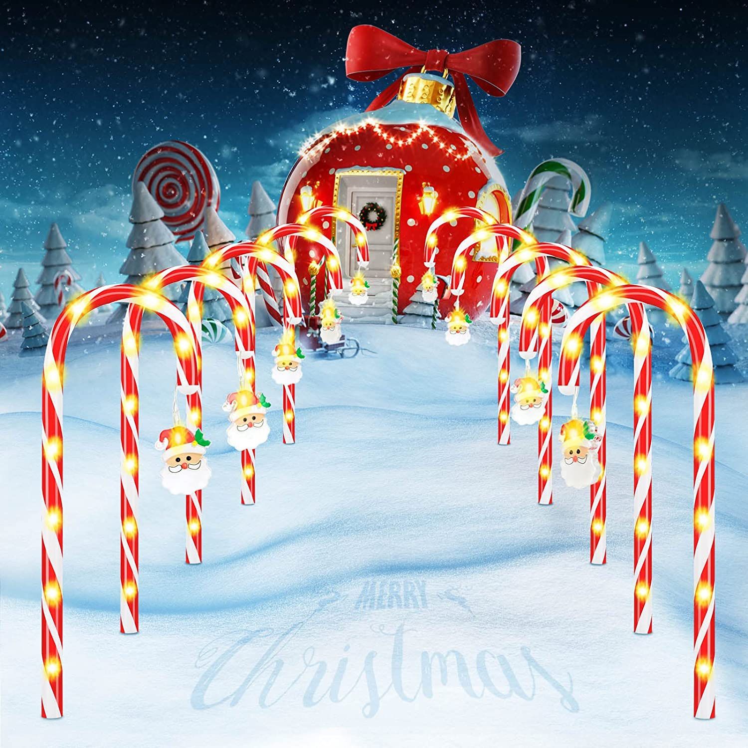 Candy Cane Lights | Outdoor Christmas Decorations, 10 Pack Pathway Lights with Santa Claus, Waterproof, Christmas Outdoor Decorations Pathway Lights f