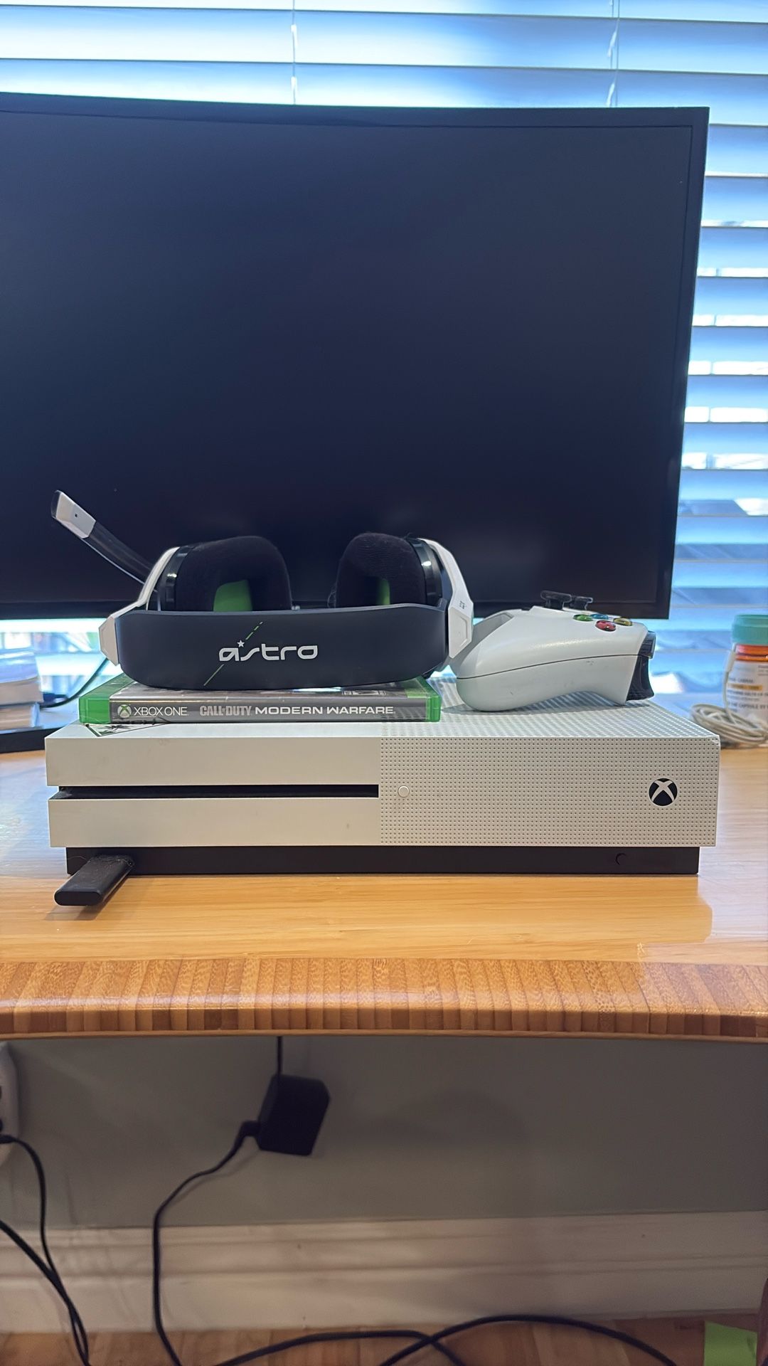 X box one S. No issues. Comes with Astro Bluetooth headset, COD MW, and controller.