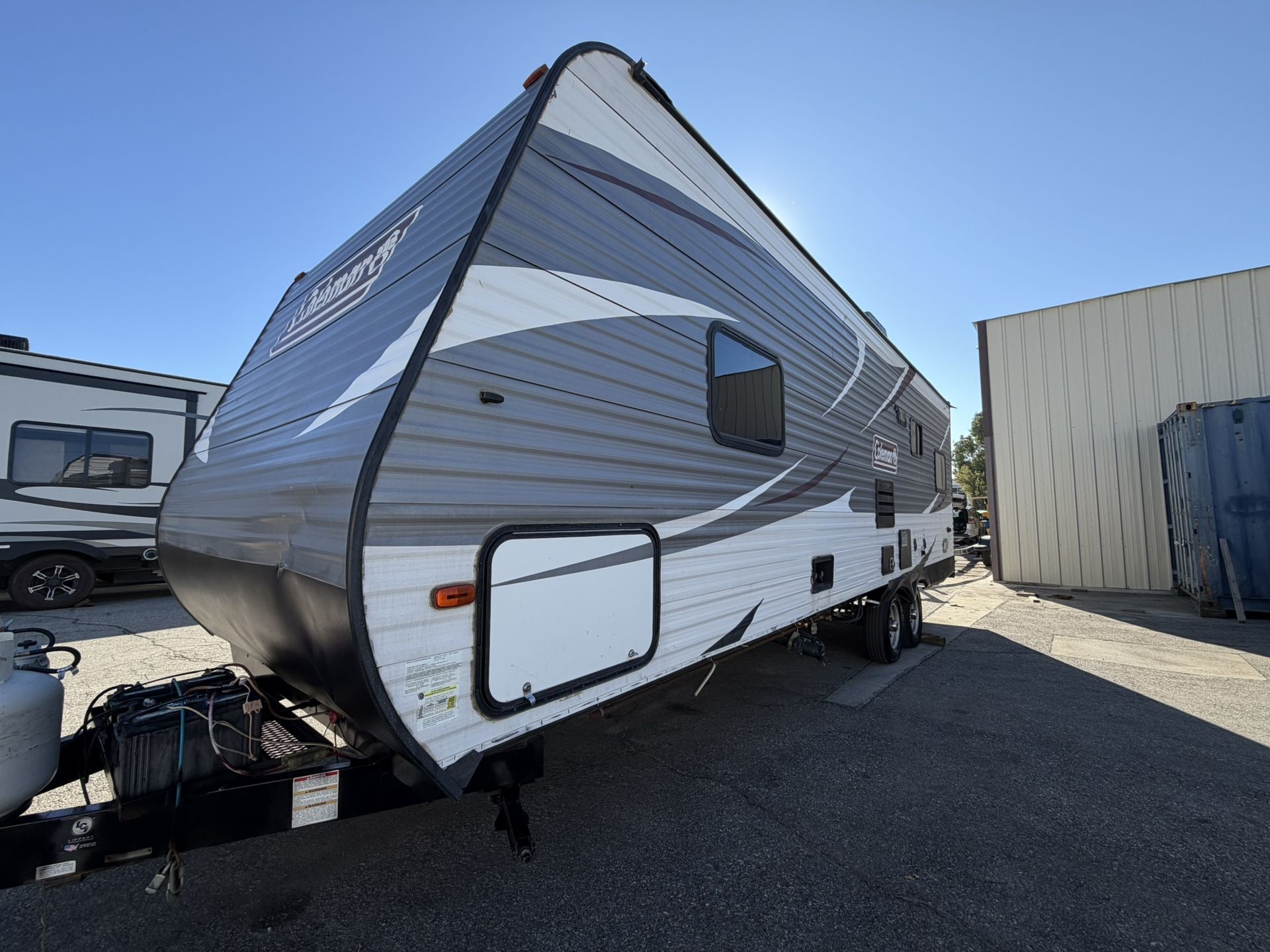 2019 Coleman Lantern Edition Travel Trailer Toy Hauler Model 250TQ. Front walk around queen bedroom. Full bathroom with shower, vanity sink and toilet. Full kitchen with all appliances. Central A/C and heating. Two rear fold down sofa’s turn into bed and rear electric bunk bed. Can sleep 6-8 people. Everything in working order and can be delivered if needed.