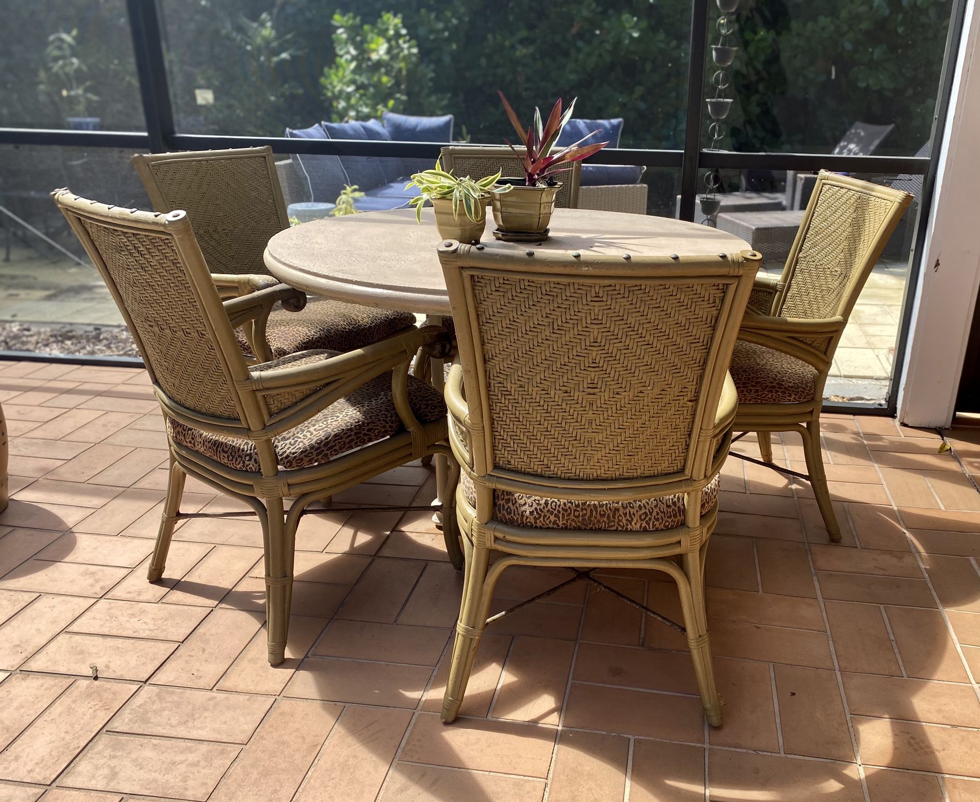 Great six armchairs for dining chair easy to pair with two other chairs for each end. Upholstery is good. Very sturdy chairs. Just need some minor TLC pick up in Palmetto Bay all part of a huge estate sale.