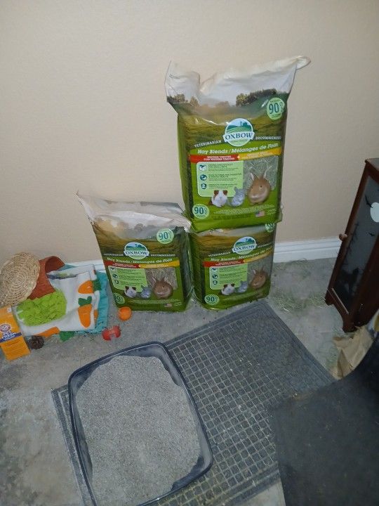 4 bags of hay 7 bags of soft bedding (not pictured) all starting at $12.00