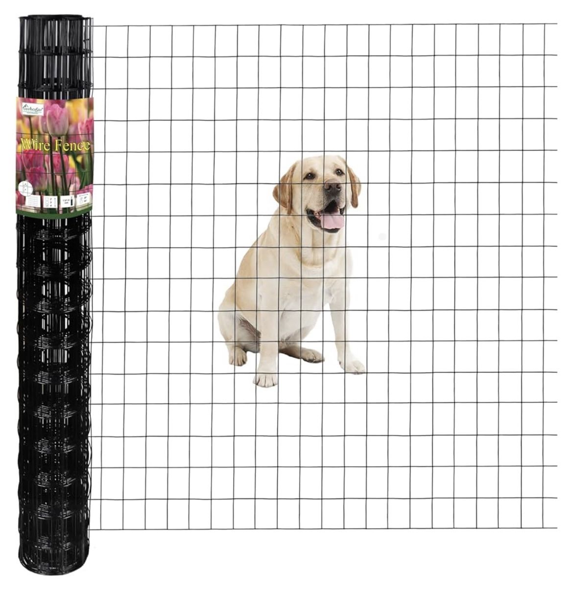 Black PVC Coated Welded Wire Fence 48 Inch x 11 Foot Garden Border Fencing Roll, Vinyl Coating, Metal Wire Mesh for Yard, Vegetable, Plant Protection, or Poultry Netting