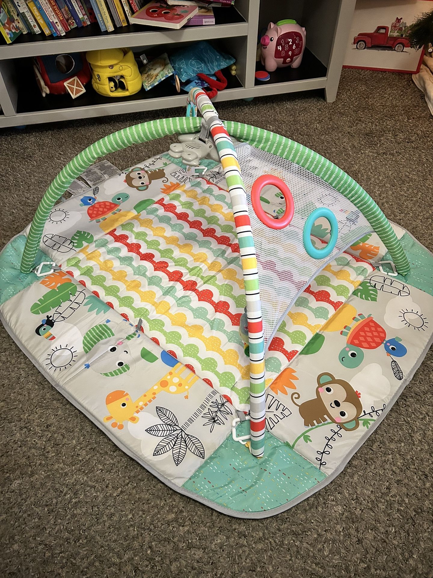 Two play mats perfect for tummy time One is more of a jungle theme and you can fold up the sides to make it into a ball pit The other is black and white and it can fold for easy storage Also comes with a variety of other infant toys - rattles, hanging toys that make a wind chime sound, teethers, pull to stand handles $25 for everything, pick up only near 43rd Ave and Bell