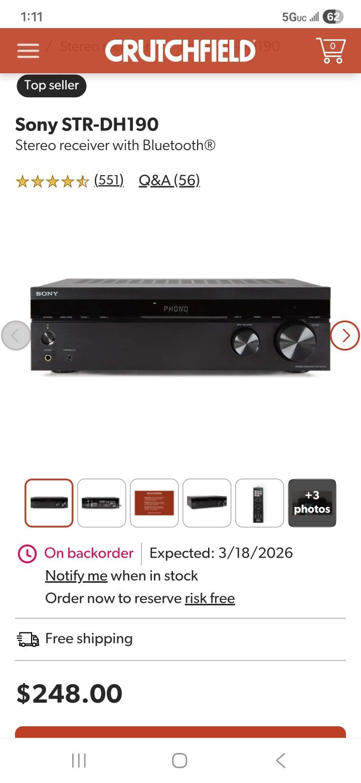 Sony STR DH 190 Bluetooth Stereo Receiver