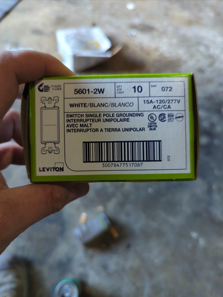Leviton decora single pole switches. 10 to a box. Only selling each box