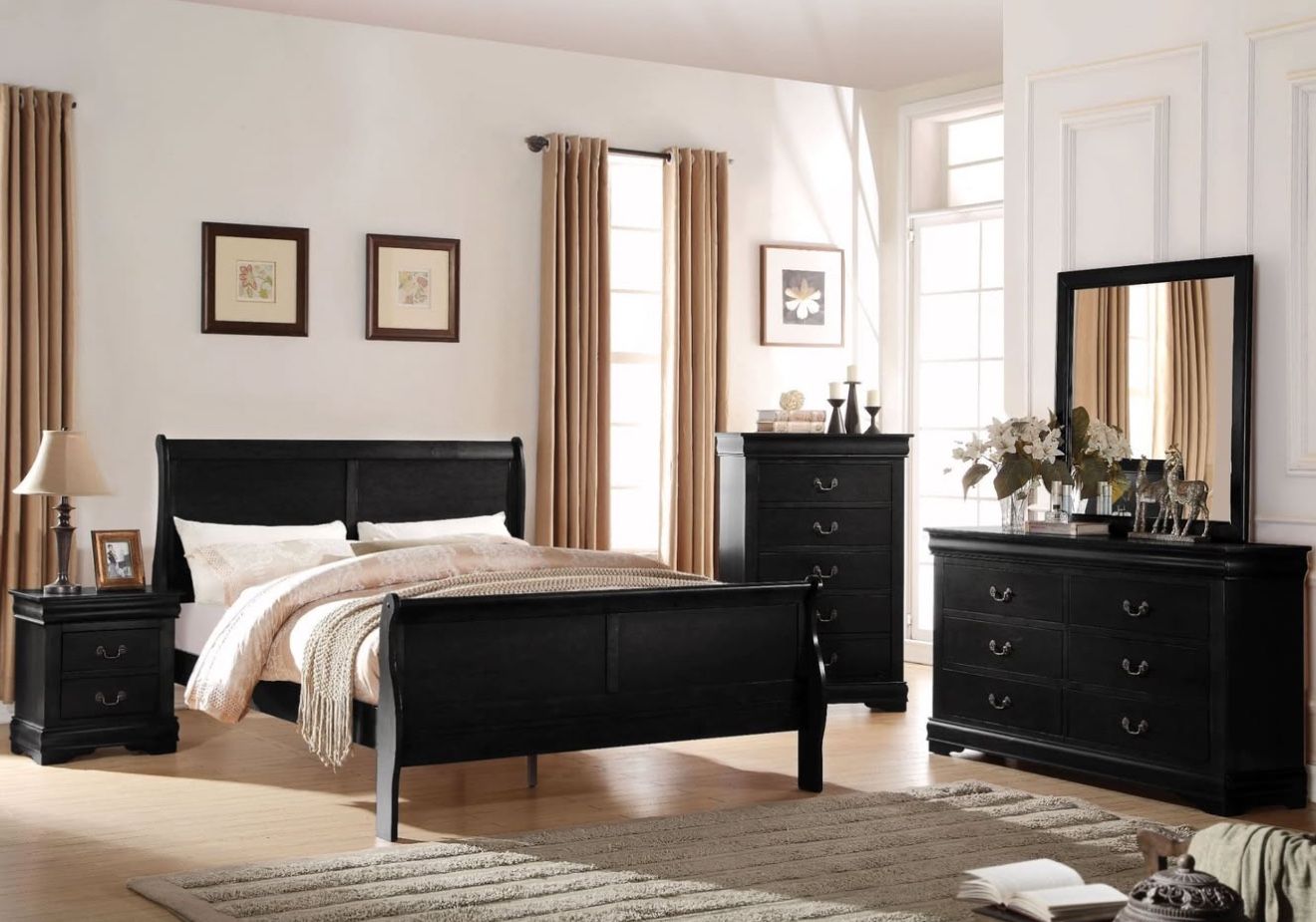 Queen bed Set ( Queen bed+2N/S+CHEST+M/DRESSR+QUEEN MATTRESS SET) Black - Free Delivery