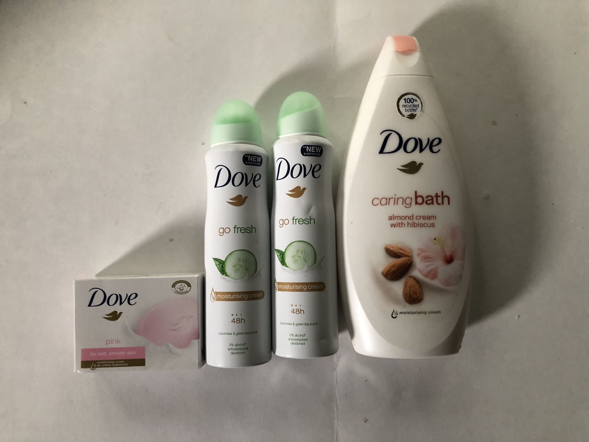 Dove 4pc Bodywash,Spray Deodorant & Bar Soap