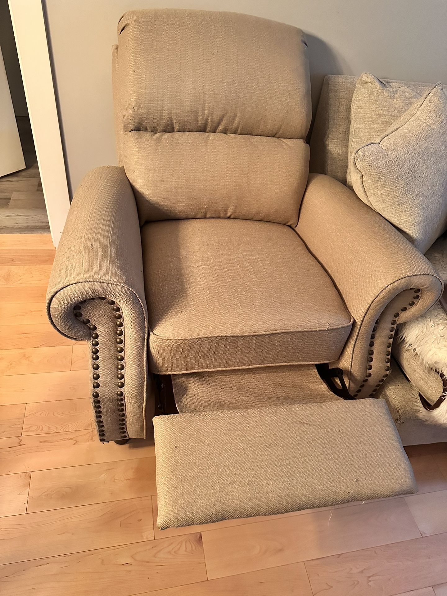 Sat in twice. Was never really used. Great condition no tears no stains. Stain proof. Located downtown Portland in Pearl district.
