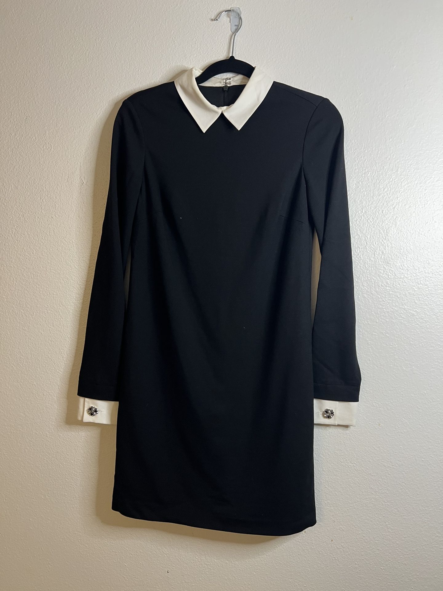 Cynthia Steffe Black & White Dress β Size 0 β $35 π€ Cynthia Steffe dress in classic black π Long sleeves with white cuffs featuring a cute gem embellishment π€ White collar for a timeless, polished look β¨ Elegant and flattering β perfect for work events, dinners, or special occasions π§Ό Gently used and well cared for A sophisticated statement dress with beautiful details. π΅ Zelle or Cash Only