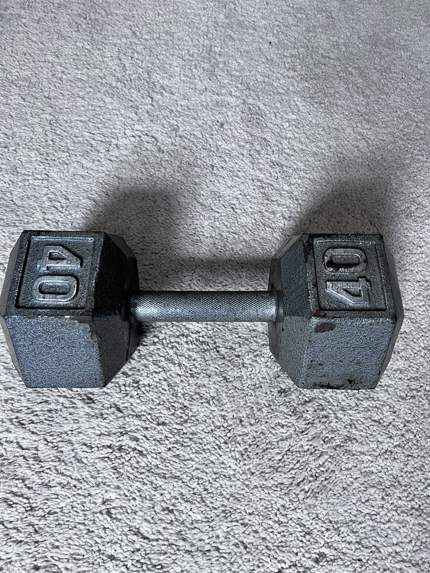 Check out the pictures. This has the no slip grip and is in good clean condition. Perfect for a home gym if you’re into the 40 pound dumbbell.