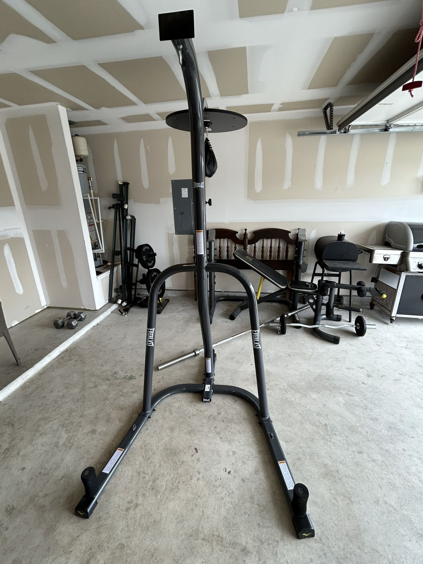 Hello, I am selling an Everlast punching bag bundle which includes: -Everlast dual station punching bag stand -Everlast 100lb punching bag -Everlast leather speed bag -2 pair of Century DRIVE boxing gloves -Everlast (Black) 180” cotton hand wraps Everything is new never used condition. Stand is fully assembled & includes manual. This was a hobby that I had planned on getting into but never did, stand sat in garage collecting dust. See pics. If interested, contact Tyler. Pickup only.