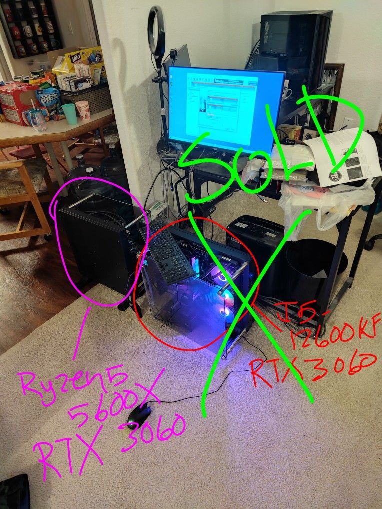 Selling two different gaming computers, on Amazon they are over $1,000 each. Smoke-free and pet-free home 1) $650 CPU ryzen 5 5600x GPU RTX 3060 RAM 16GB ddr4 MEMORY 1TB SSD SOLD SOLD SOLD 2) $750 SOLD CPU I5-12600KF SOLD GPU RTX 3060 ($250) RAM 16GB ddr4 SOLD MEMORY 1TB SSD SOLD SOLD SOLD SOLD I'm willing to lower the price if you buy both together. $1300 together I do have (2)2x16gb ram laying around, I can slot in the 16s and take out the 2x8s, just ask, I'm sure we can work out a deal.