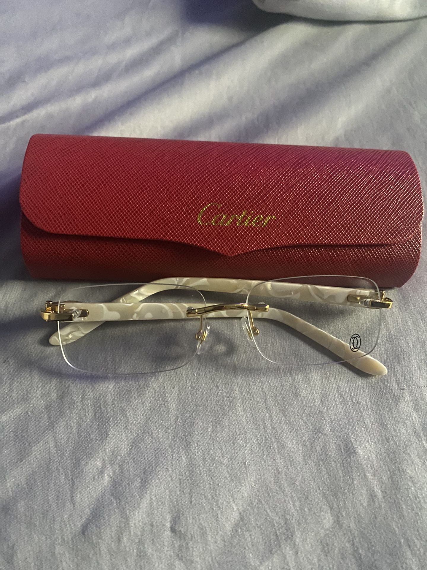 • Color: White • Material: High-quality acetate • Temple Style: Cartier emblem detailing Condition: Like new Don't miss out on the opportunity to own these timeless Cartier glasses that effortlessly combine luxury and style. elevate your eyewear collection today!