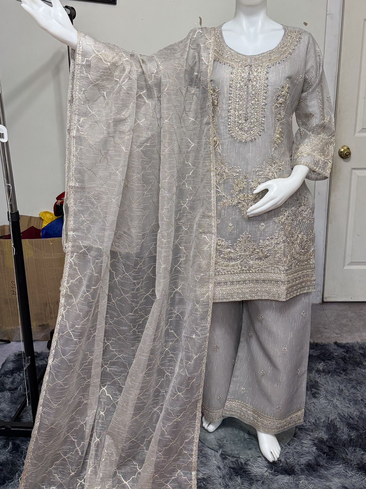 Soft Zari khaadi net dress. Embroidered pearl, sequins work .pant also lined. Chest 42 hips 46 length 37. Tag size Large.❌return/ exchange ❌$55. Shipping available in all over the usa