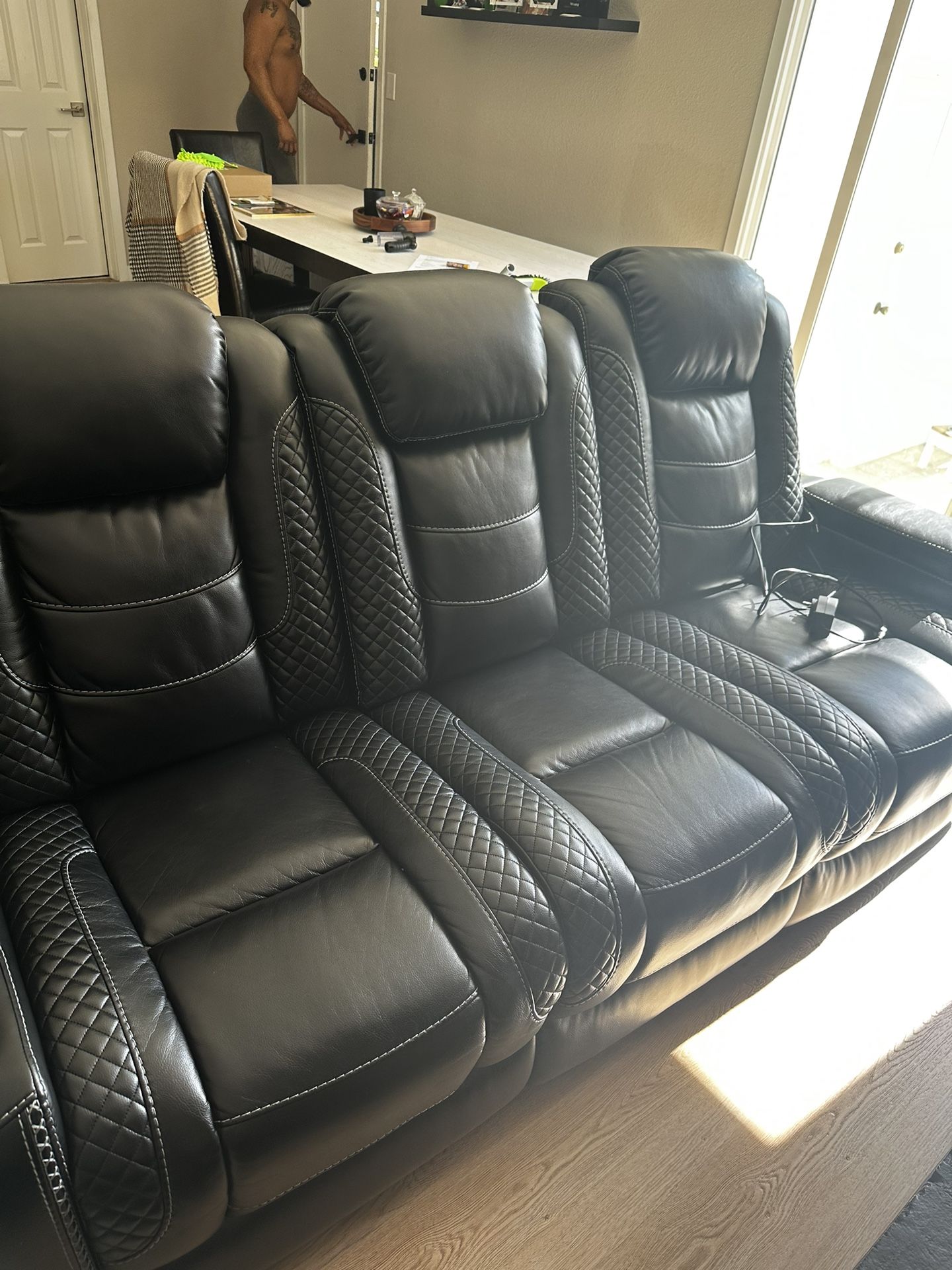 This reclining sofa is like new. We barely user it and it was just purchased six months ago for $3000. I am only selling because I wanted a different type of couch due to my back pain and not adding a cinema room while this is comfortable I can no longer use it. It has lighted cup holders and under-seat lighting as well as charging stations. You can come see them if need PLEASE READ: RESPECTFULLY I WILL NOT ACCEPT ANY LOWER THAN LISTED, I BOUGHT MY FURNITURE FOR MY NEW HOUSE AND NO LONGER WANTED A CINEMA ROOM. I OPTED FOR A SECTIONAL FOR MY LIVING ROOM AND ALREADY FORKED OUT $6,000 FOR THESE RECLINERS, THEY ARE NEW AND TAKING UP SPACE IN THE GARAGE NOW WHERE THEY ARE COVERED IN PROTECTIVE PLASTIC. $1,000 is a very good price, considering it will cost you 3k+ for each set from the store. I was one week over the return date or I would have just returned them. I’m writing this because i have been receiving rude messages when i don’t respond to lowball offers. I do not need the money, I will not accept anything other than listed and if anyone tried to scam me with a fake check or anything I will report you. Thank you to the people who have sent respectful offers and messages!