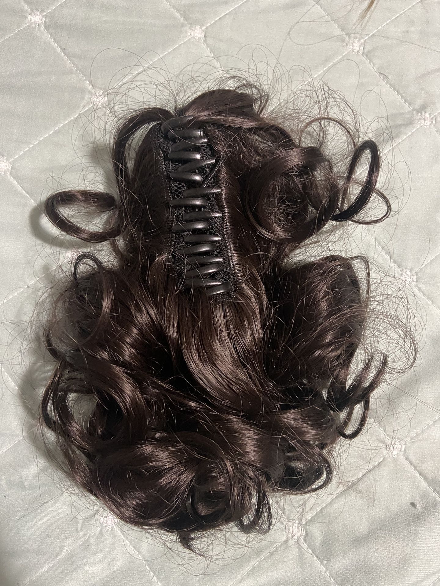 Ponytail wig hair clip, new never used. Dark brown, short, synthetic hair