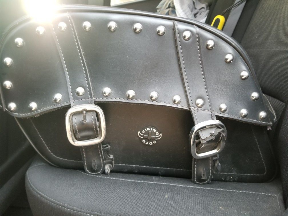 Viking Bags Studded Saddle Bags. Came off Suzuki Volusia, however I'm sure they would mount on many common models. Mostly in good shape, one of the straps does need attention. This can be seen in the cover photos. Questions feel free to ask. Thanks
