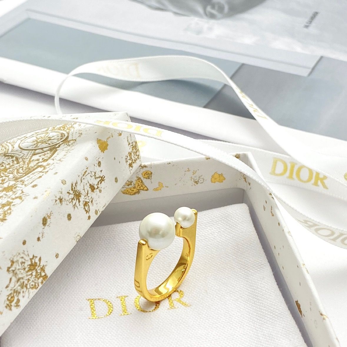 There are logos engraved on both sides, and two large and small pearls are dotted with the opening.