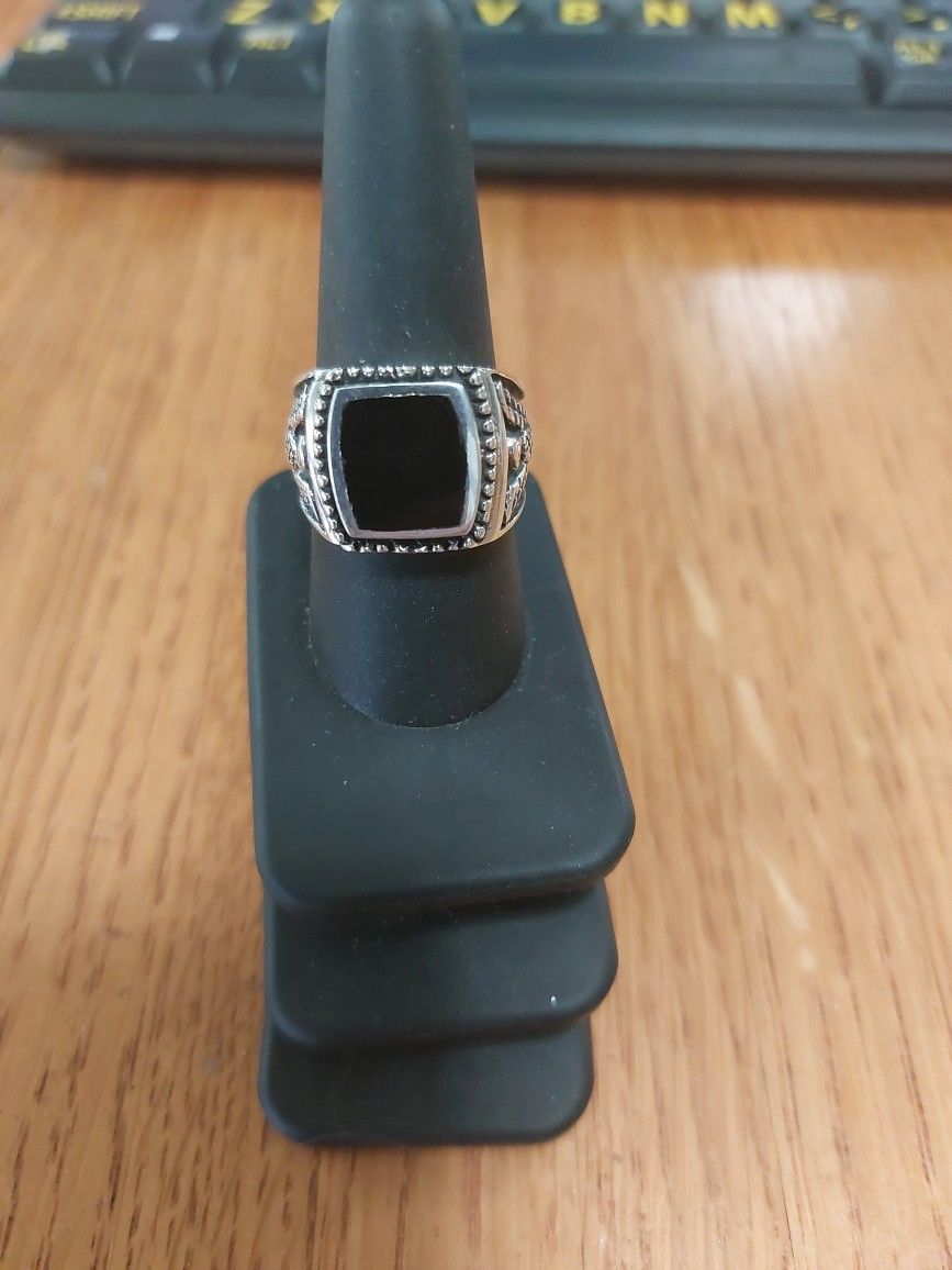Sterling Silver Black Agate Men's Ring 15mm Sz9