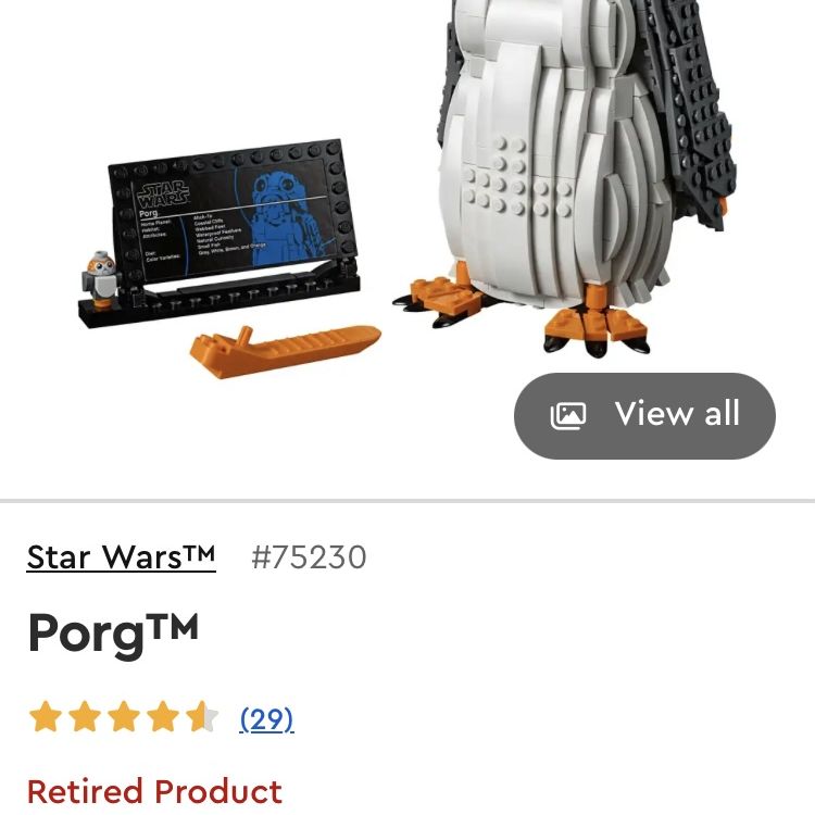 Brand new open box LEGO Star Wars Porg 75230 Building Set (811 Pieces). Box has seen better days but all pieces are in there. Retired by Lego & $200 retail at Walmart.