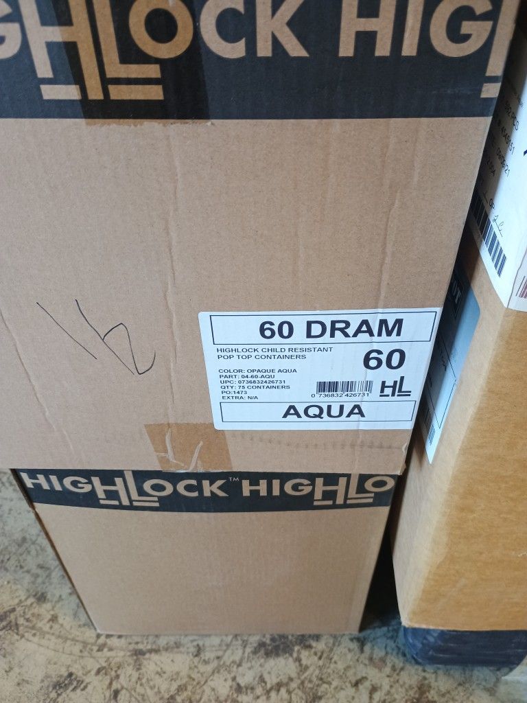 I have cases of these child resistant plastic pop top drams in sizes 13 through 60. 2.5 pallets worth, all brand new and just want them gone ASAP.