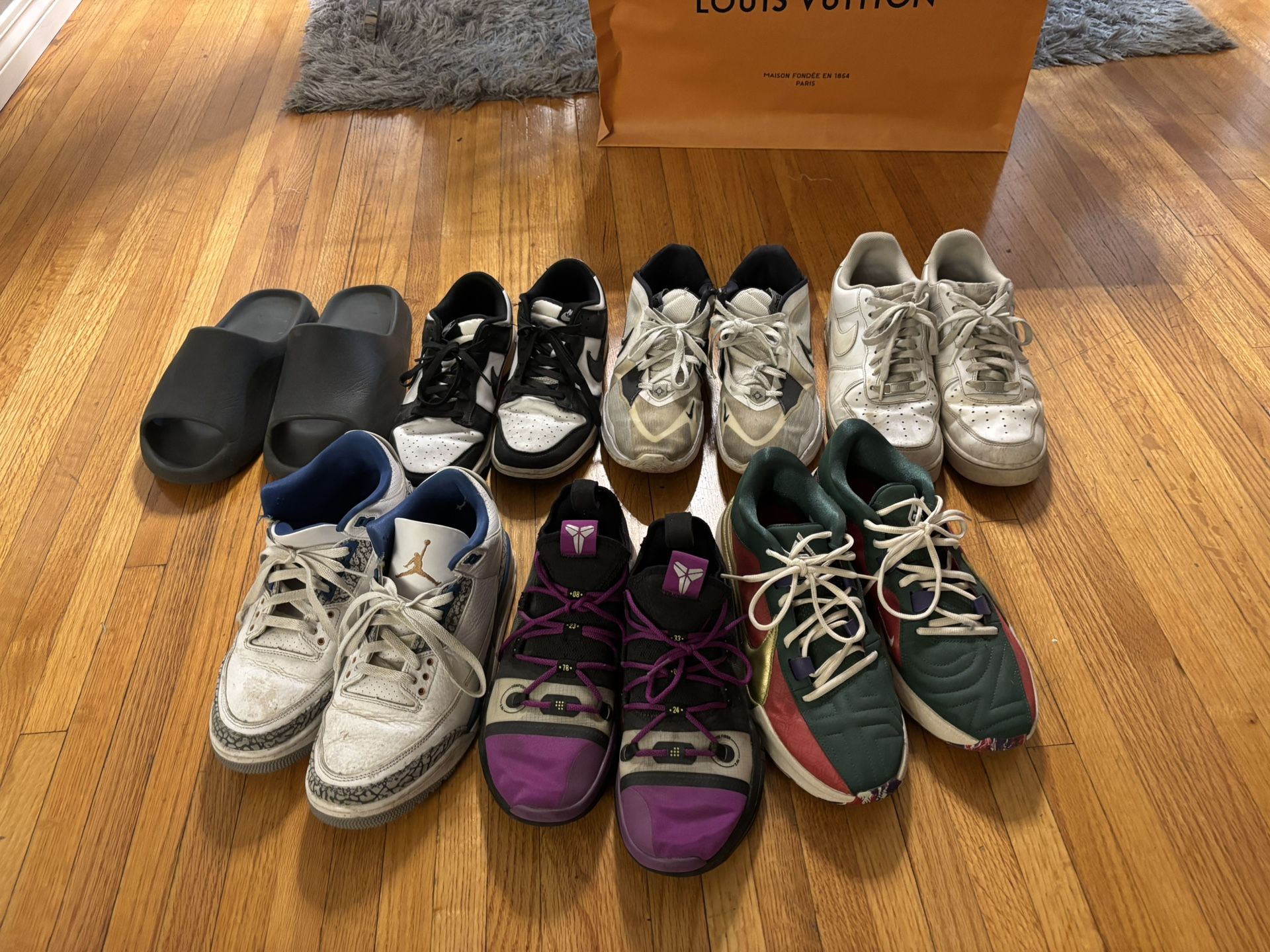 Kobes (M9), Jordan 3s (M10), Dunks (M10) Giannis’s (M10) , Airforces (M10), Yeezy Slides (M10), Kyries (M9.5) Open to any offers and also open to selling any of these shoes separately
