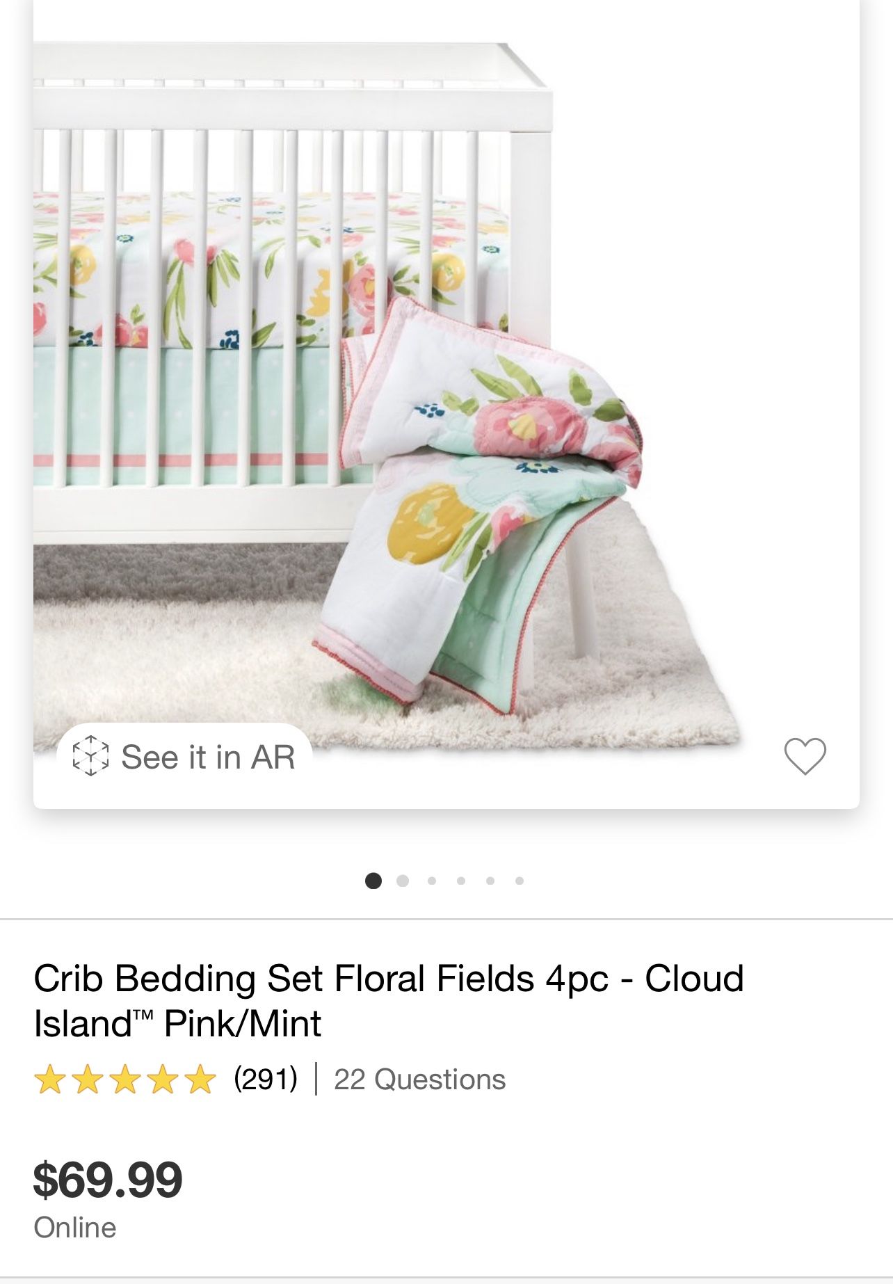 Baby girl crib set Includes: Crib skirt 2 crib sheets 1 small blanket 1 big blanket Diaper change pad cover Curtains 2 decorative pillows Smoke free/pet free home
