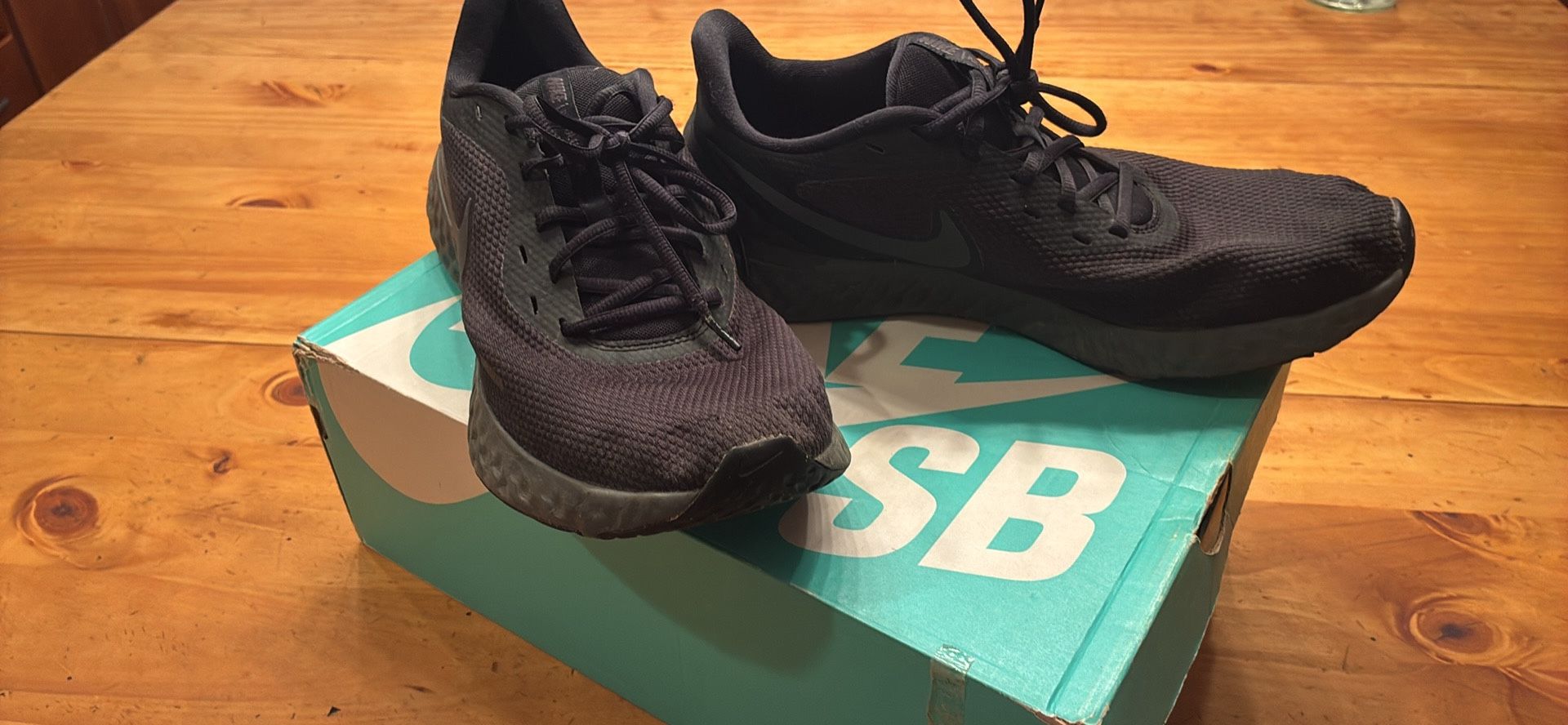 Men’s Black Nike Running Shoes – Size 11 Gently used men’s Nike running shoes in classic all-black. Size 11. Lightweight and comfortable with great cushioning—perfect for running, walking, gym workouts, or everyday wear. Soles still have plenty of life left, and the uppers are in good condition with normal light wear. Comes from a smoke-free home. See photos for condition. Pickup preferred, cash or Venmo accepted. Feel free to message with any questions
